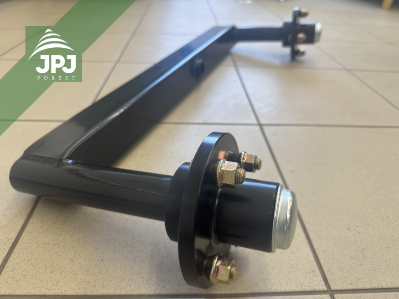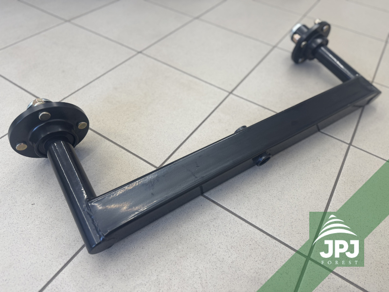 Robuste und zuverlässige Pendelachse/Bogieachse, ausgelegt für anspruchsvolle Bedingungen. Dank ihrer innovativen Konstruktion mit zwei stabilen Naben gewährleistet sie hervorragende Stabilität, gleichmäßige Lastverteilung und reibungsloses Fahren auf unebenem Gelände.